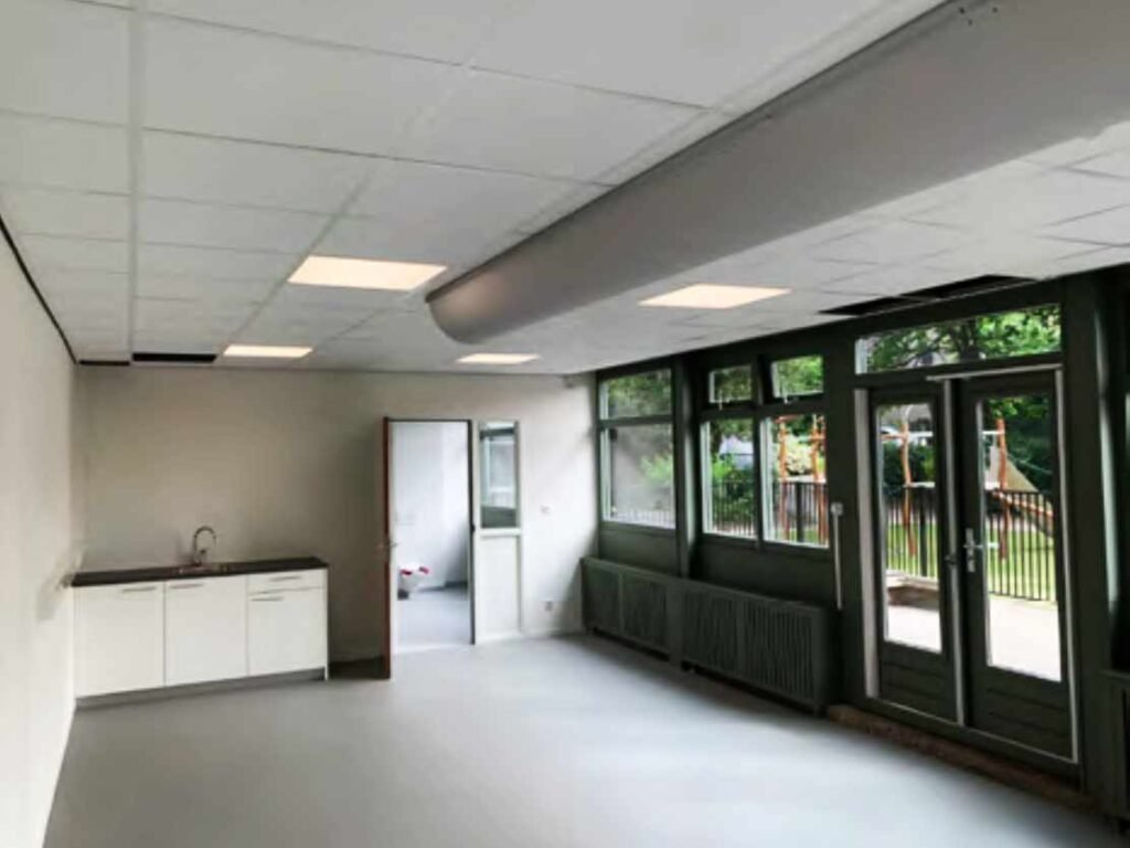 Energetisch werd het pand duidelijk verbeterd. Isolatie, installaties en verlichting zijn com- pleet opgewaardeerd. De planning was de grootste uitdaging: de huisvesting moest ge- reed zijn voordat de nieuwbouw van de Bis- schop Bekkersschool startte. ‘Omdat we onze onderaannemers vroegtijdig betrokken, konden we snel schakelen. De samenwerking verliep soepel en het resultaat is een ruim en hyperflexibel schoolgebouw.’